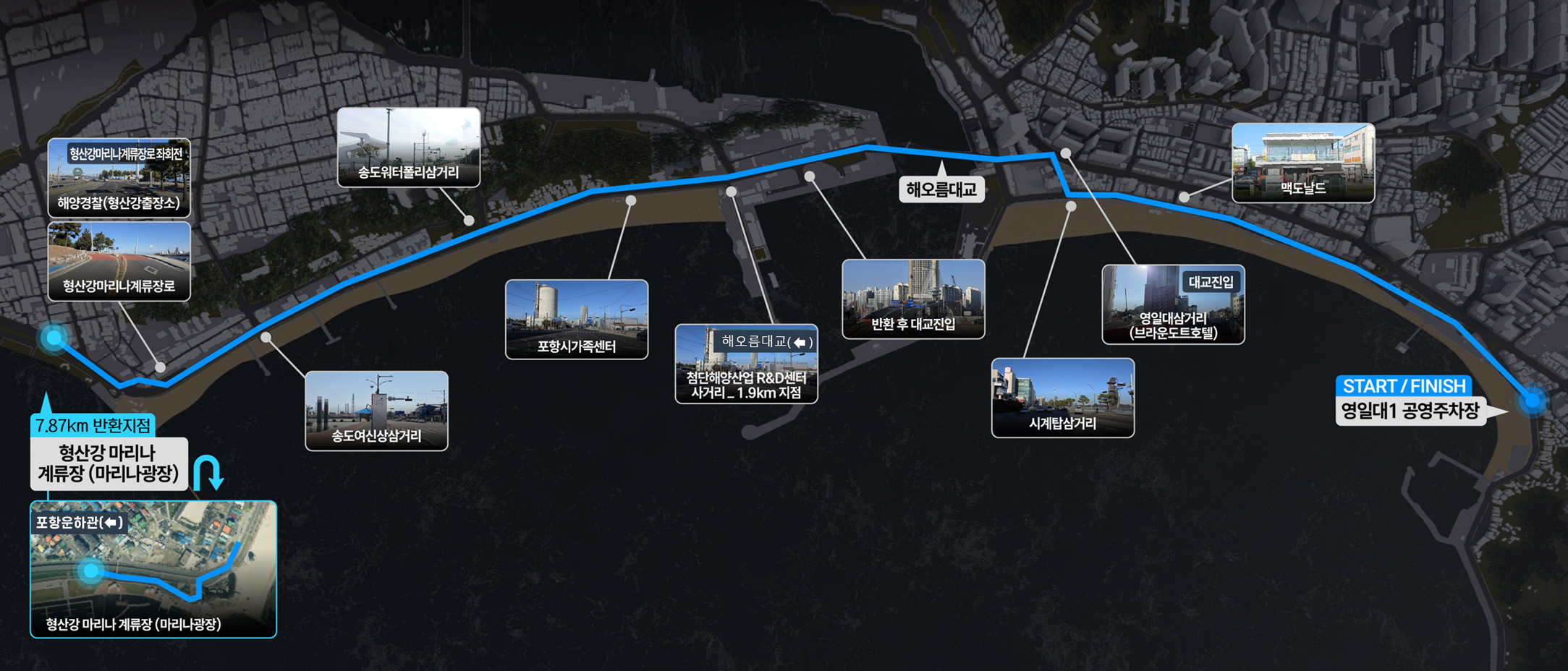 - 첨단해양산업 R&D센터 앞 사거리 (3.8km 반환점)